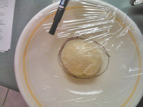 when ready, take off the wrap and push the dough down with your fist.